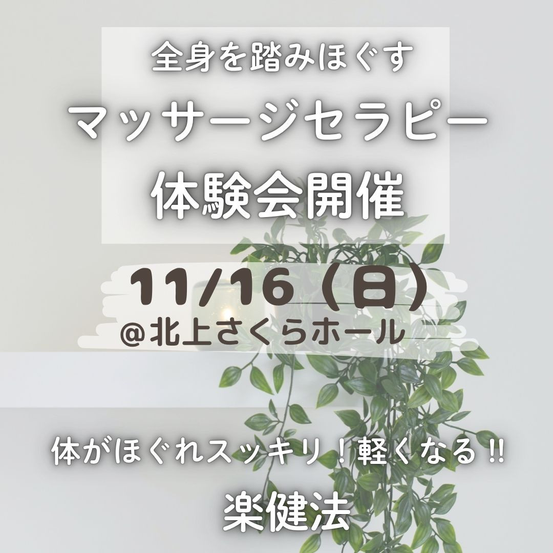 とっても気持ちのいいマッサージセラピー体験会を開催いたします!